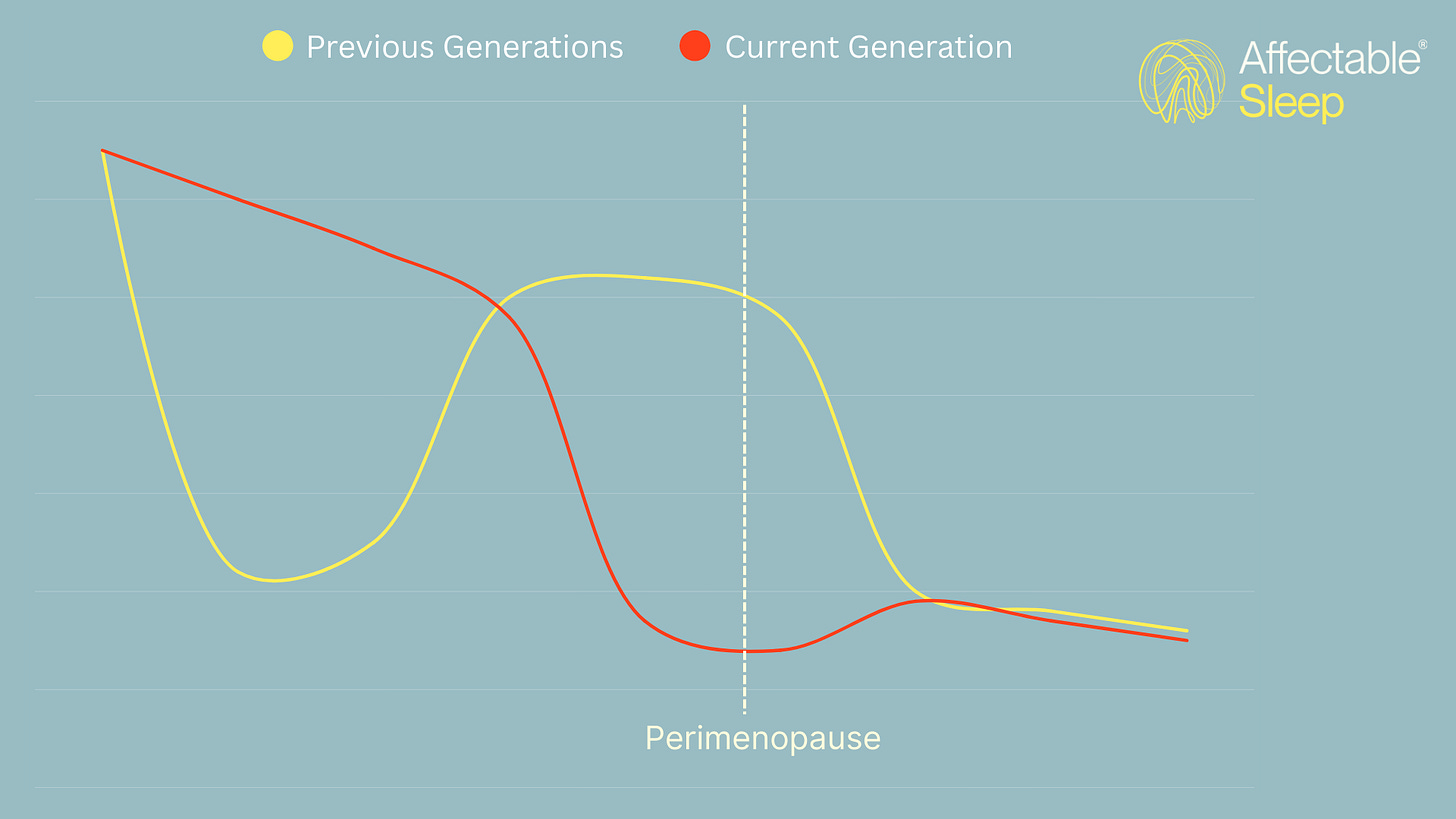 Now that women are having children later in life, delayed maternity means the decrease in sleep function related to parenthood has begun to overlap with perimenopause. Mothers now say they never “recovered” from poor sleep after having children.